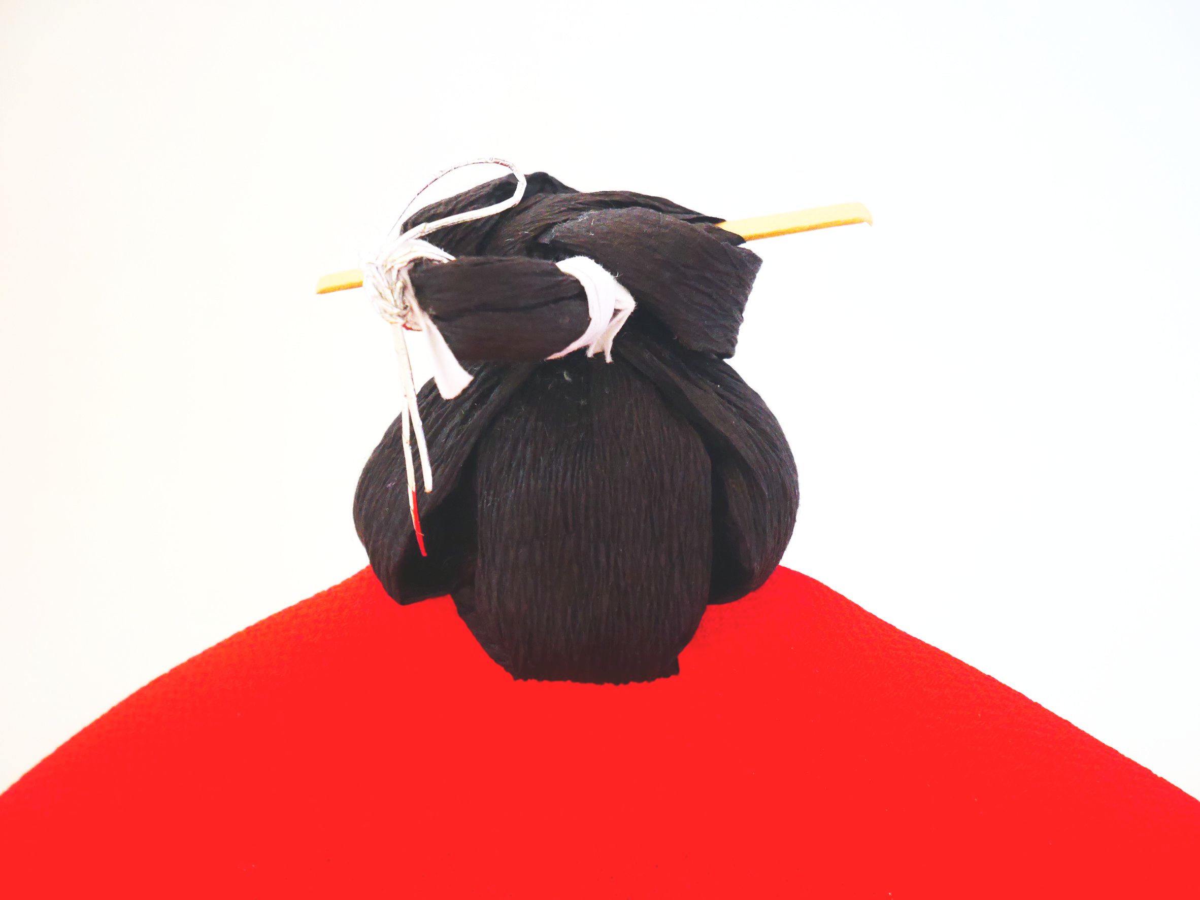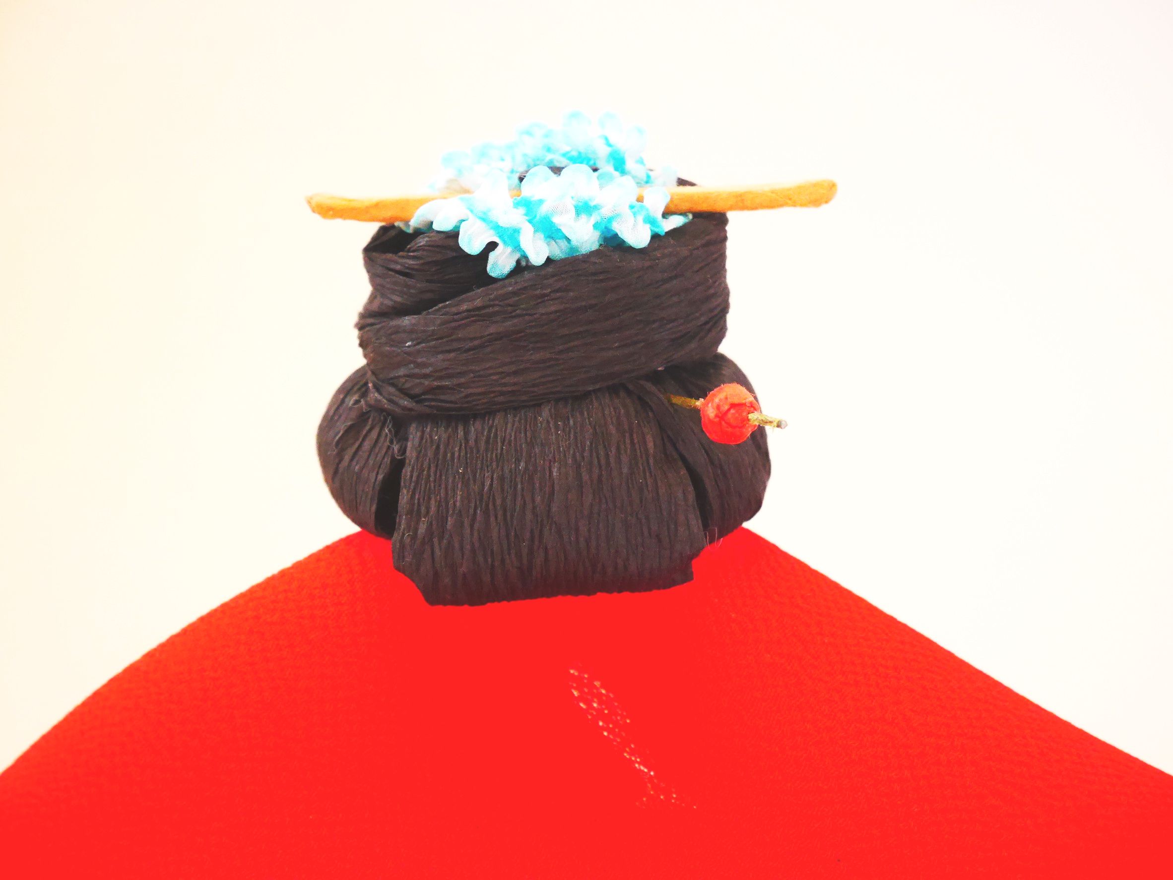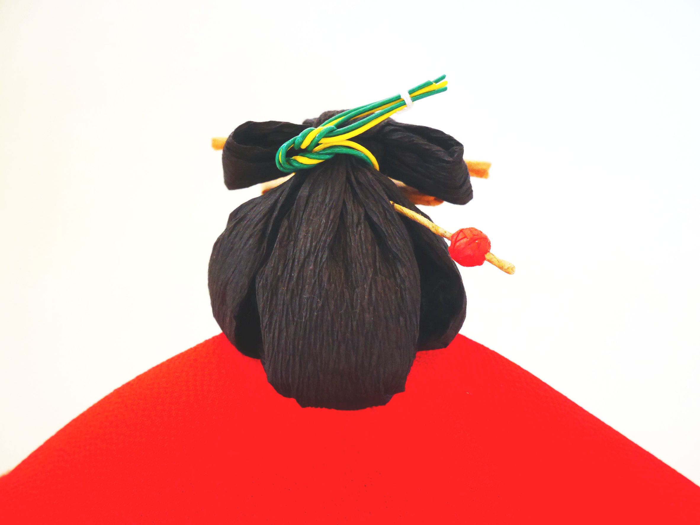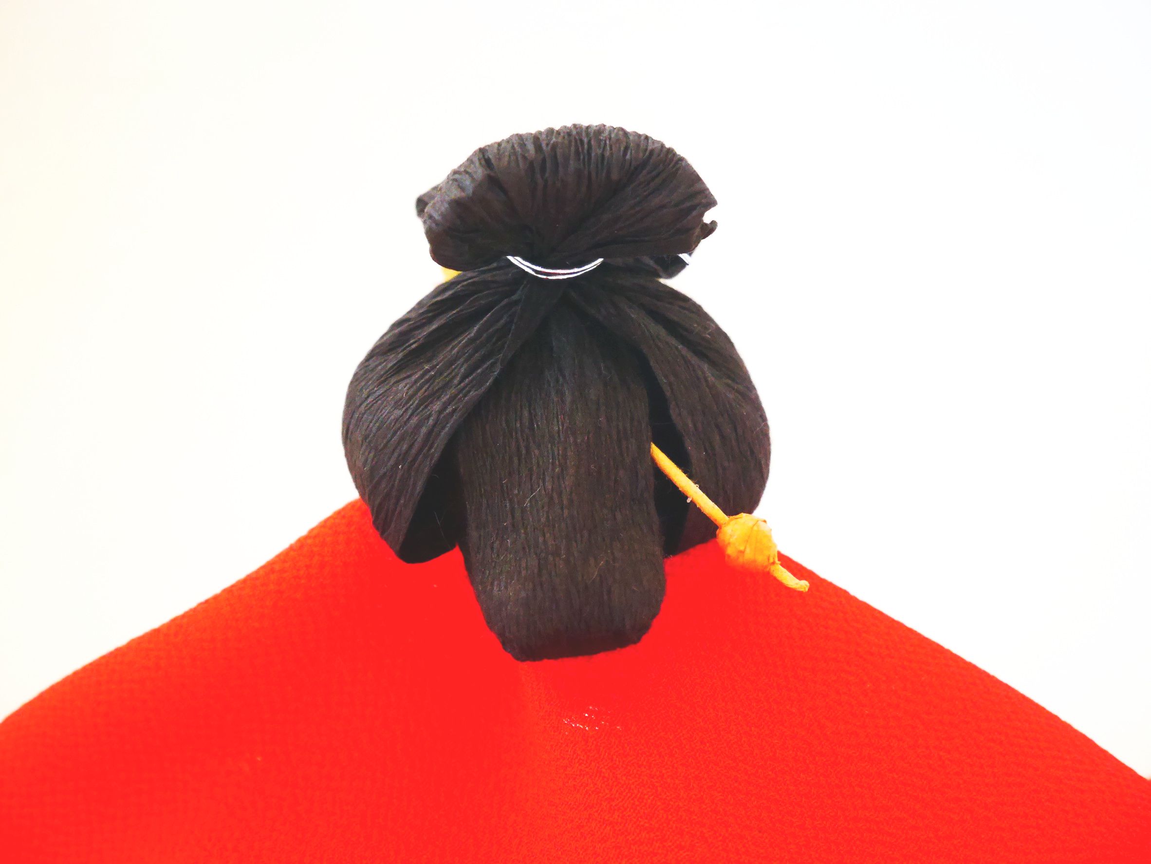 古くから公家の男児が結っていましたが、明治時代以降は8,9歳の女児によって結われました。頭の上に眼鏡のように2つの輪をつくった髷です。