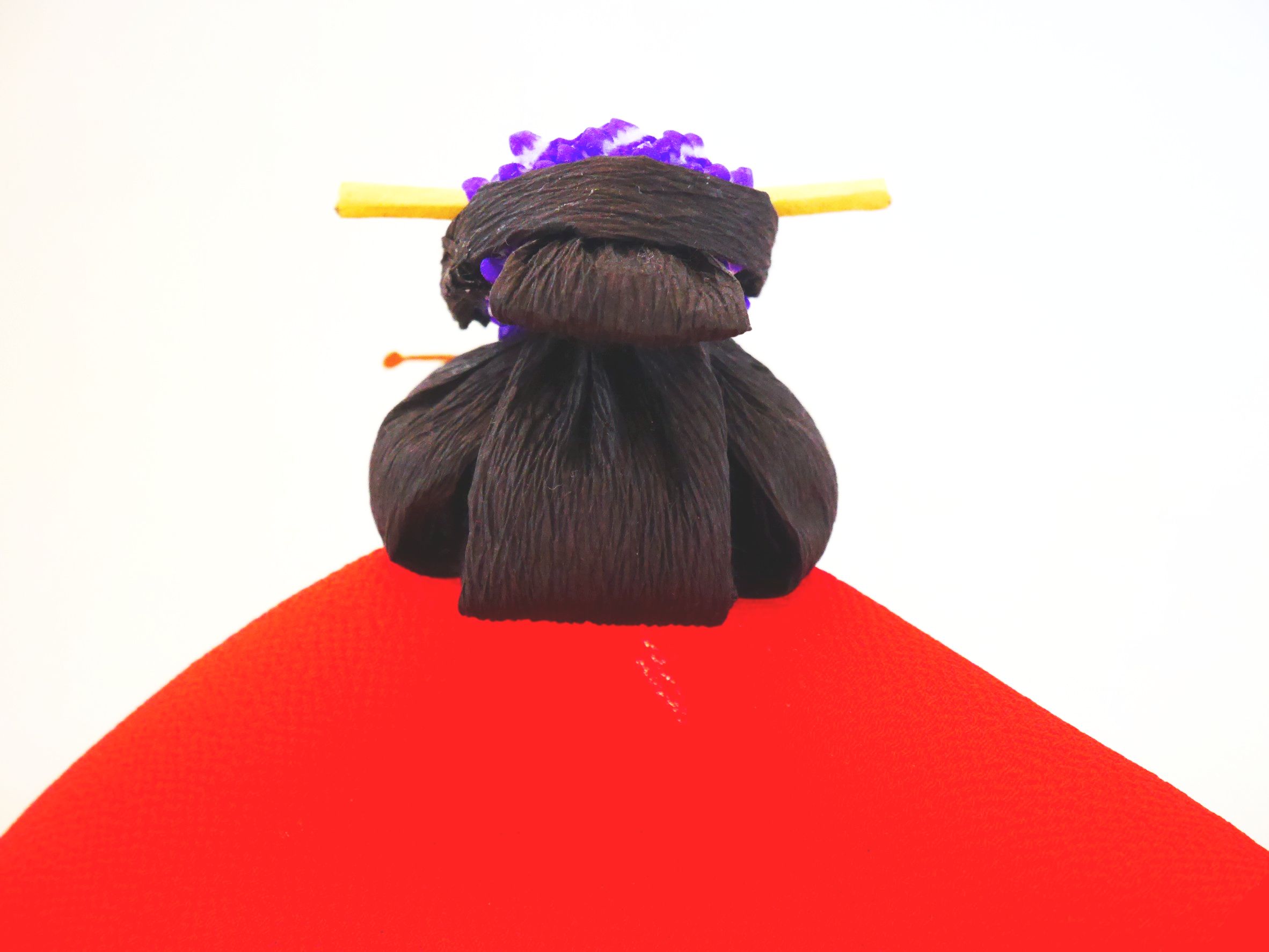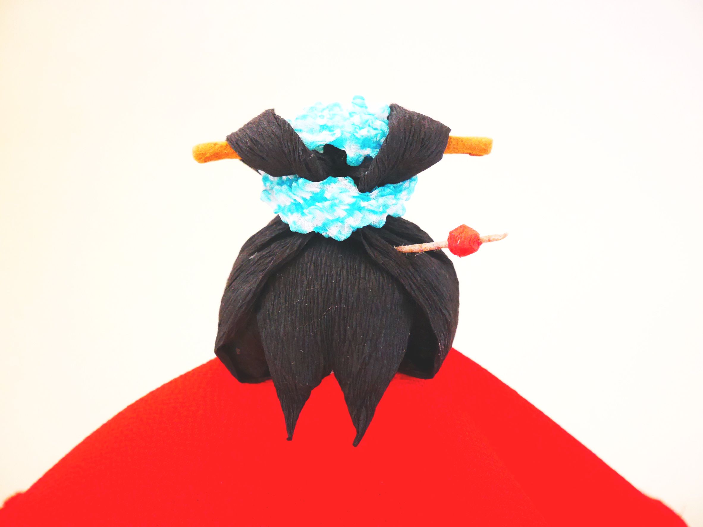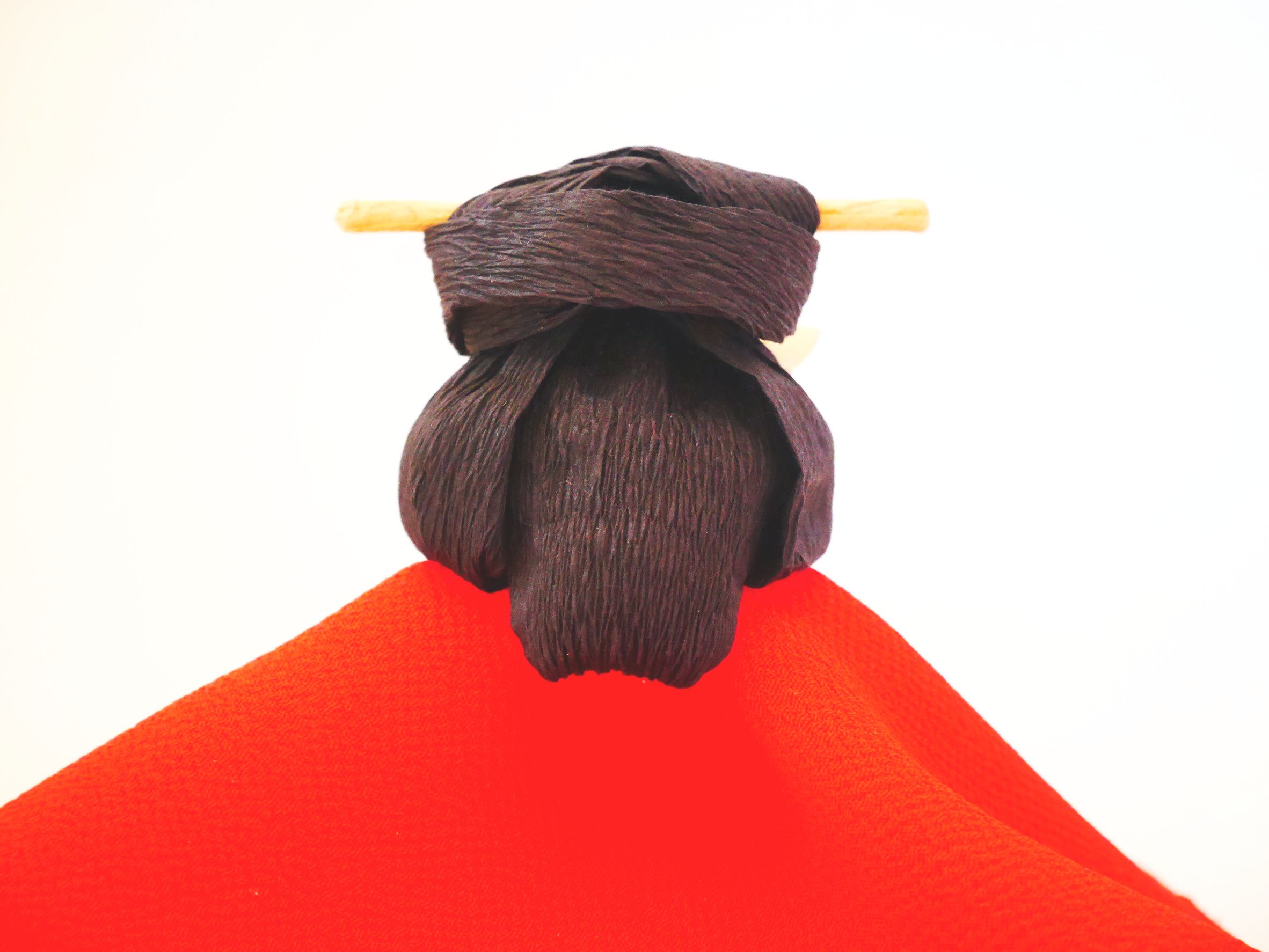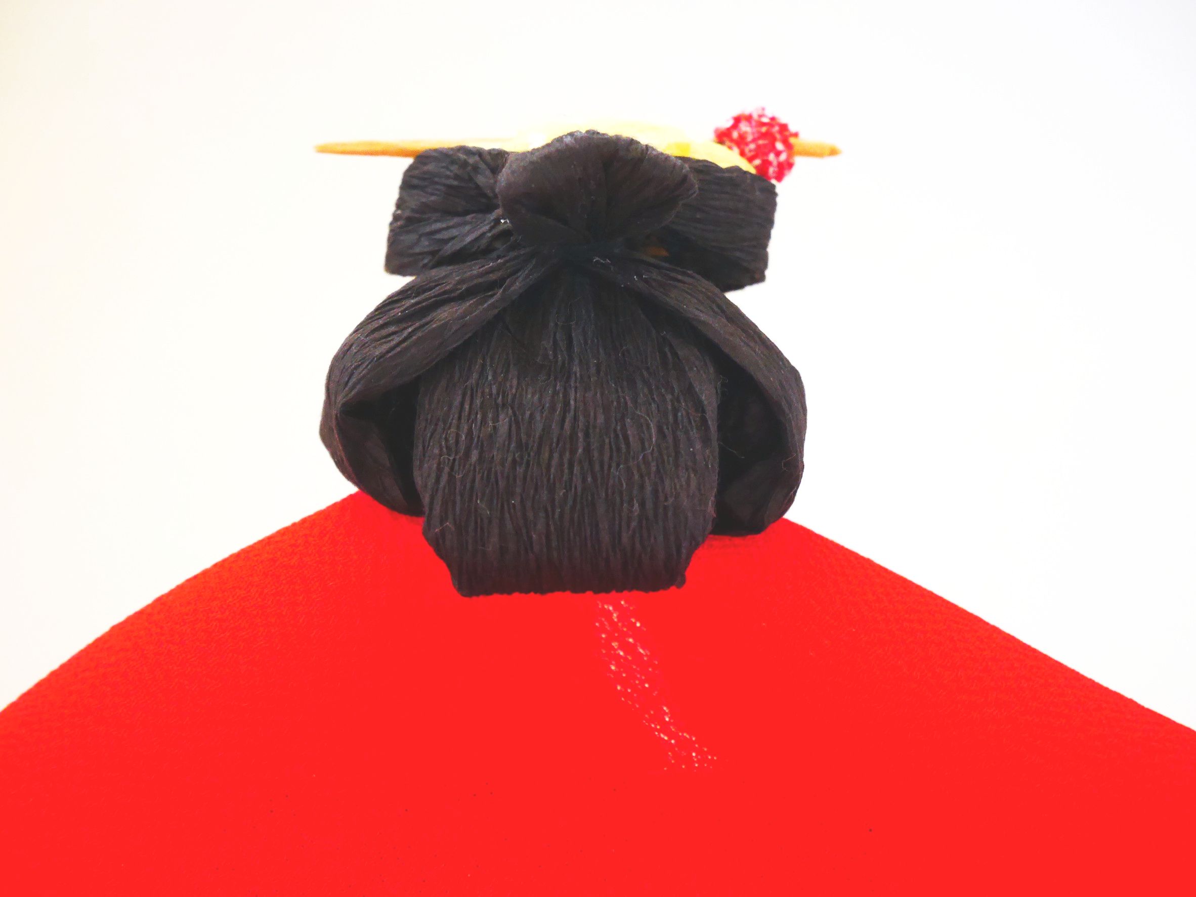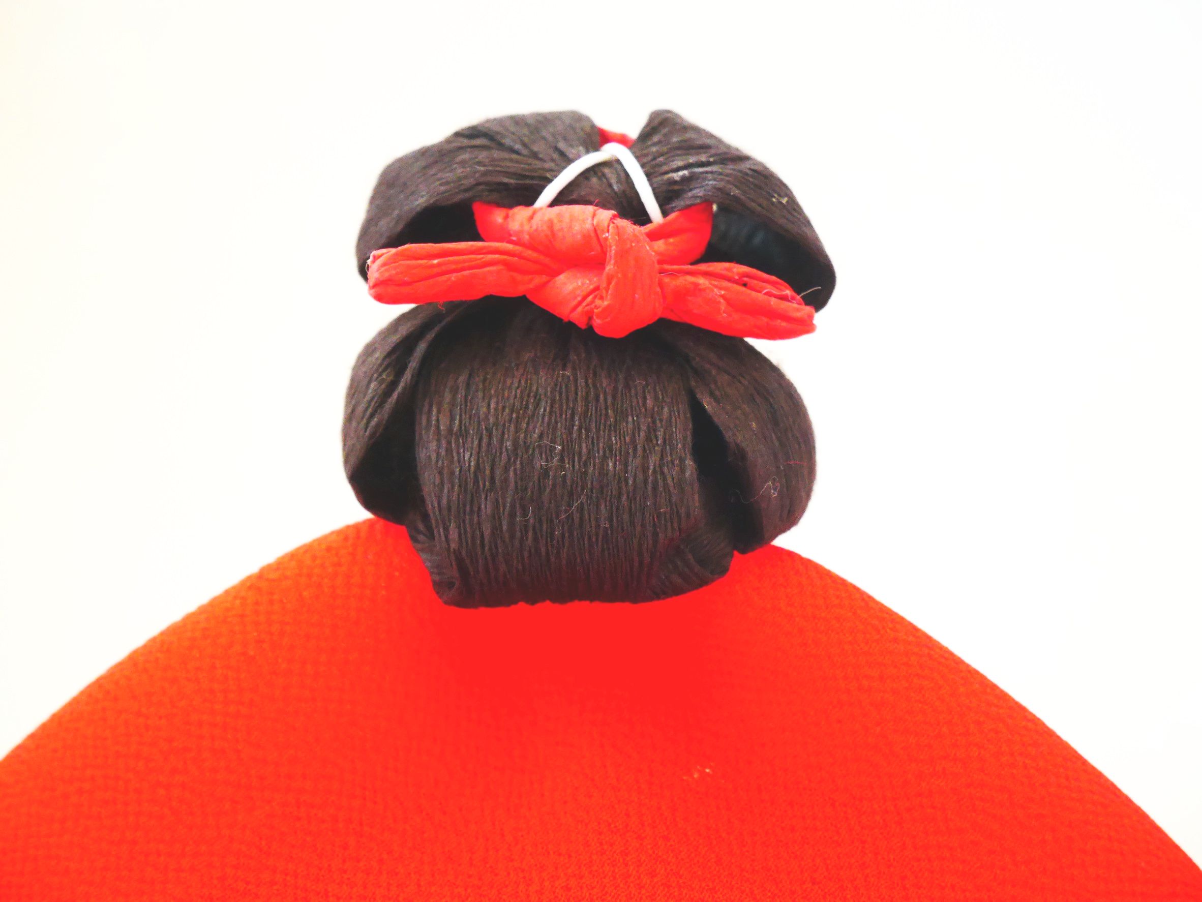 古くから公家の男児が結っていましたが、明治時代以降は8,9歳の女児によって結われました。頭の上に眼鏡のように2つの輪をつくった髷です。