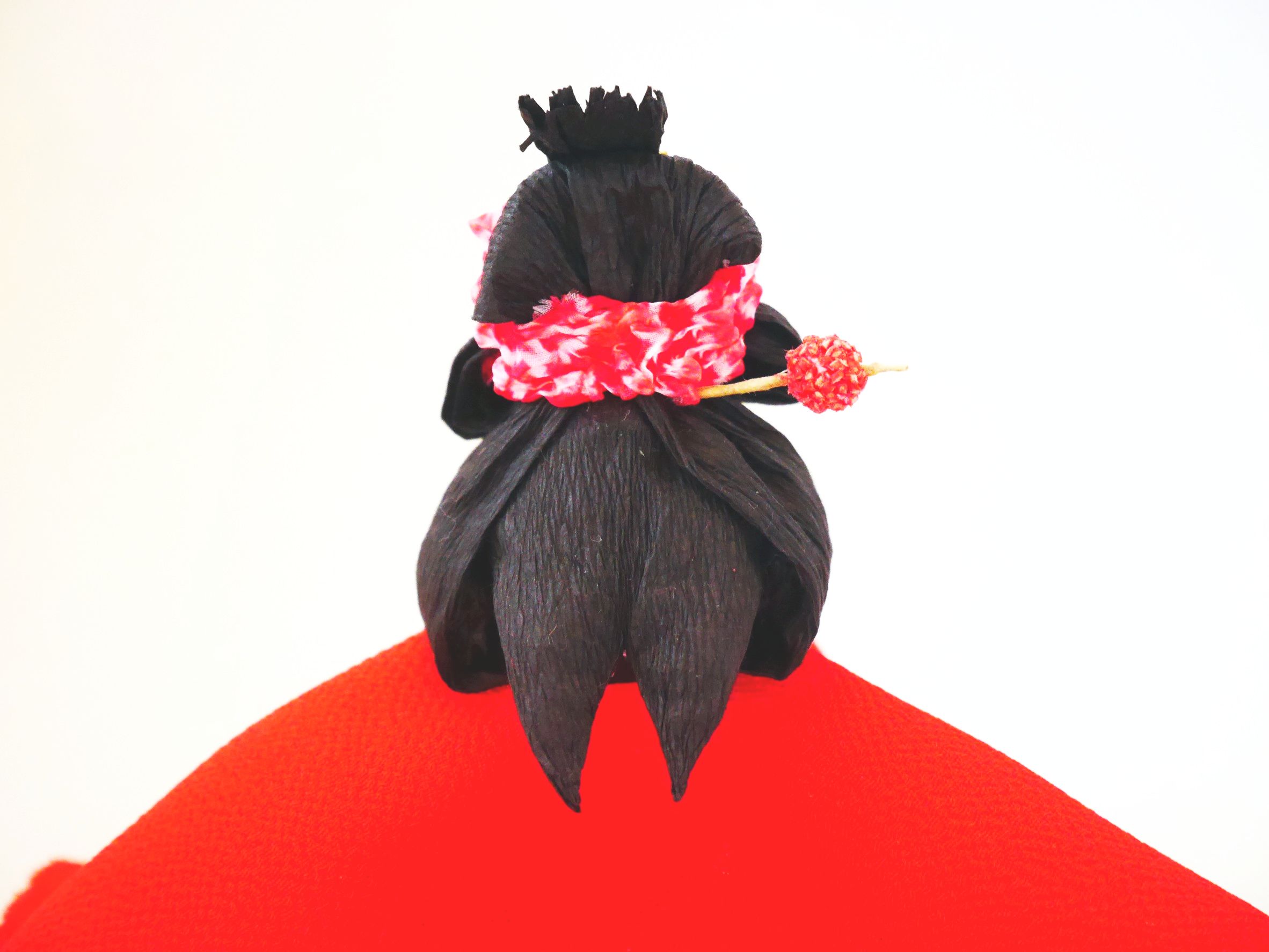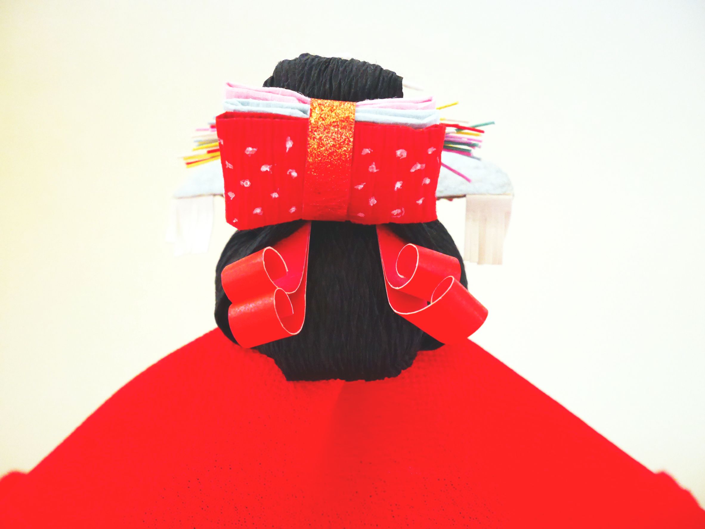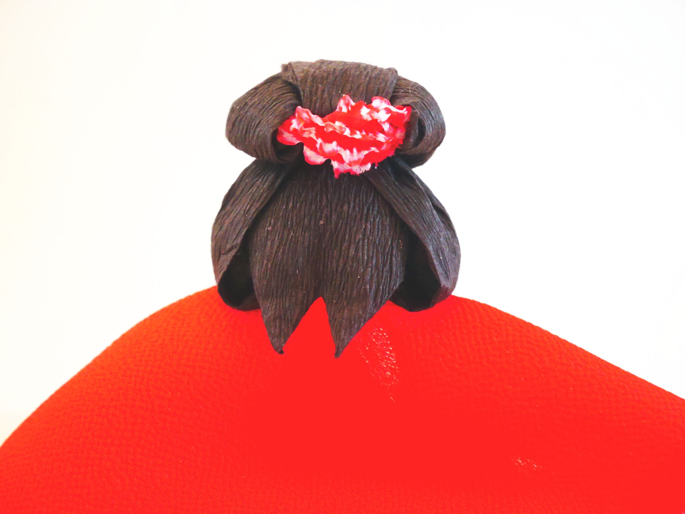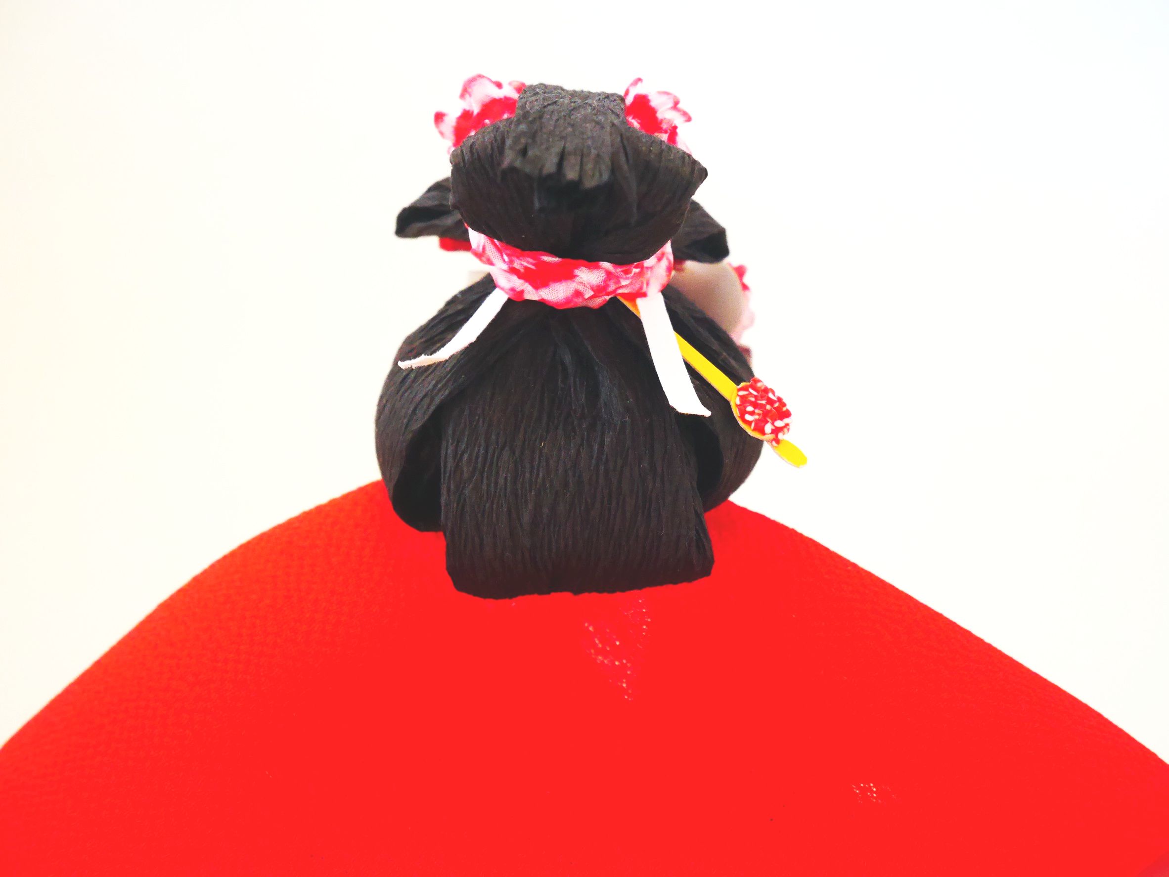 古くから公家の男児が結っていましたが、明治時代以降は8,9歳の女児によって結われました。頭の上に眼鏡のように2つの輪をつくった髷です。