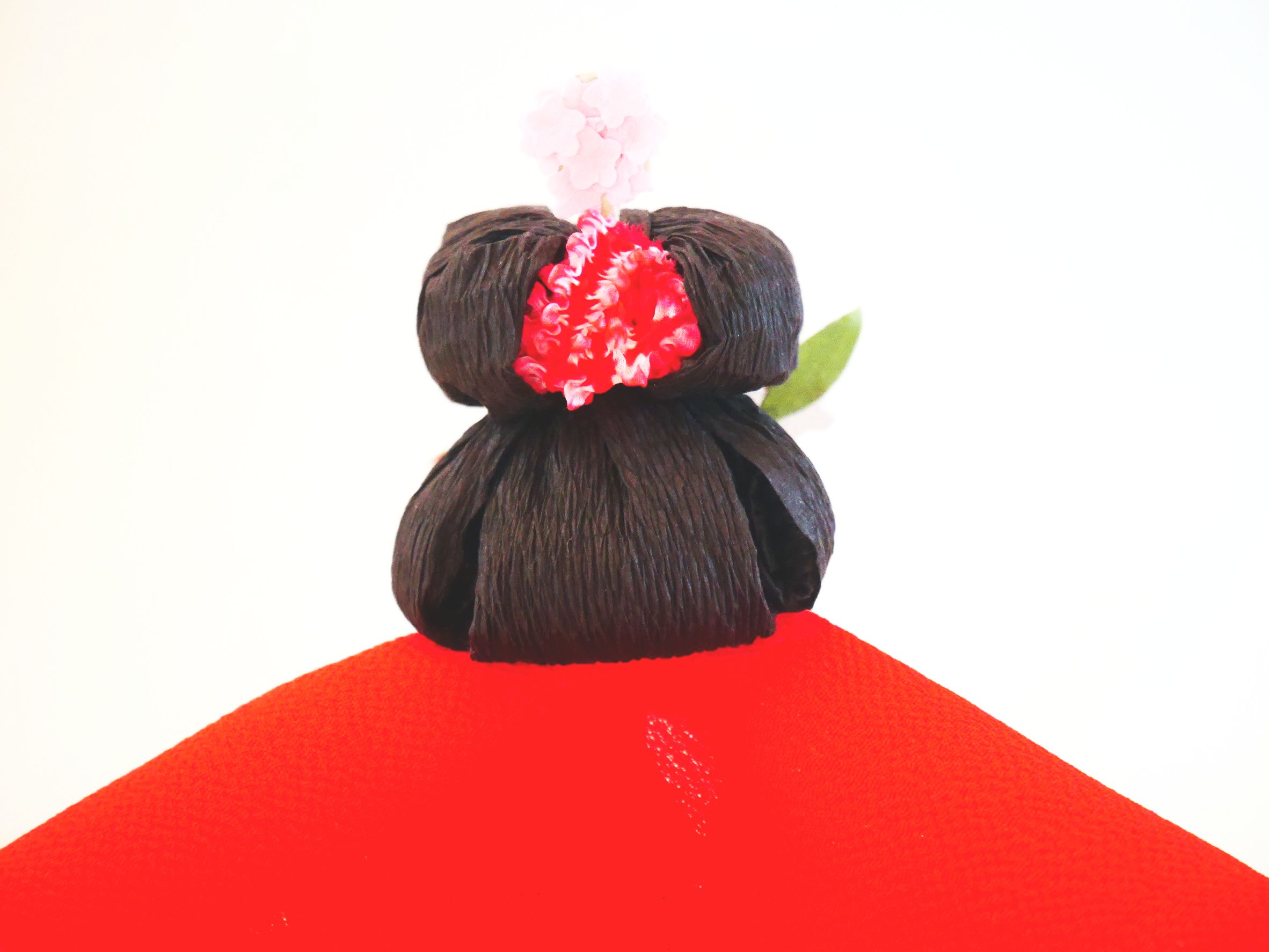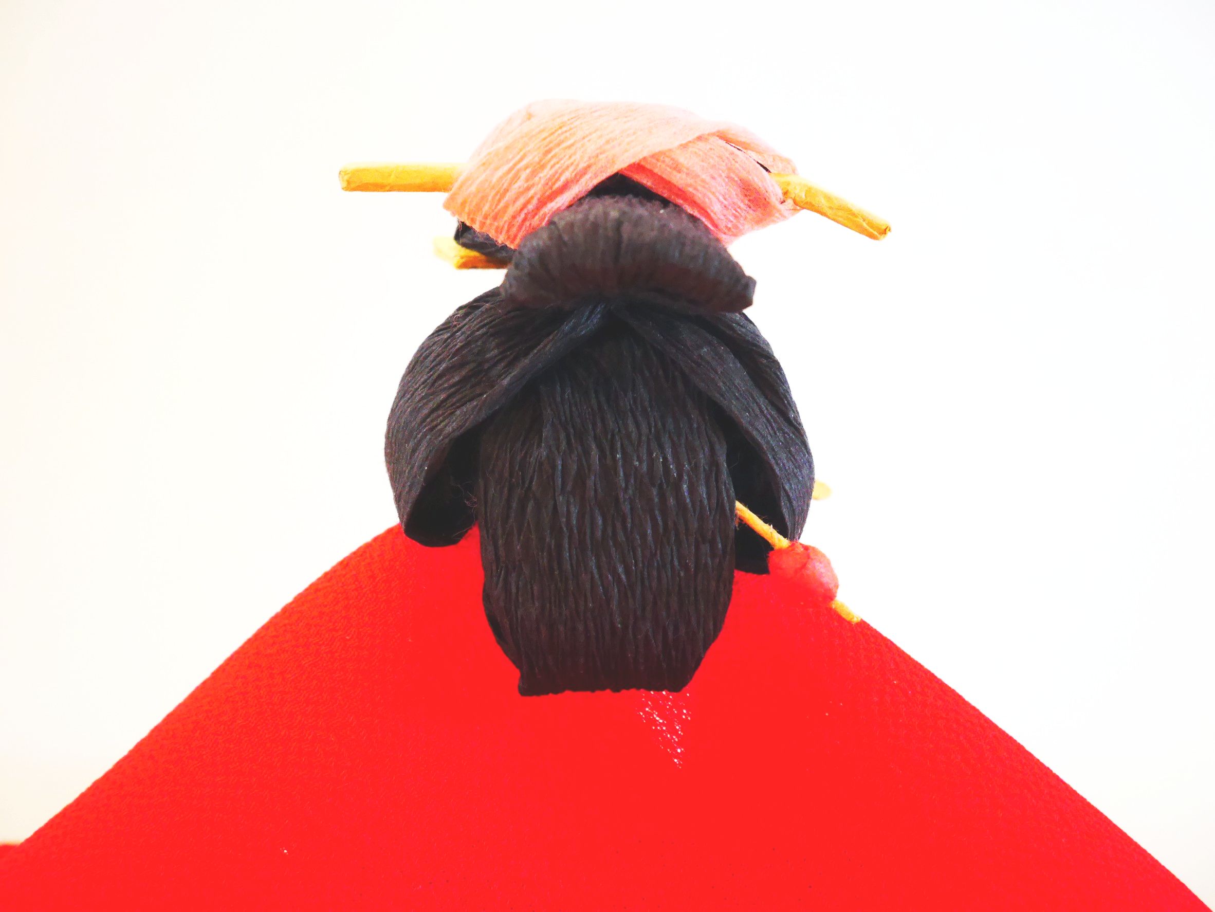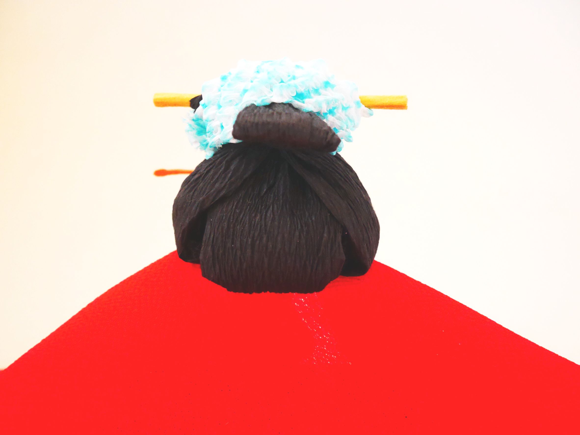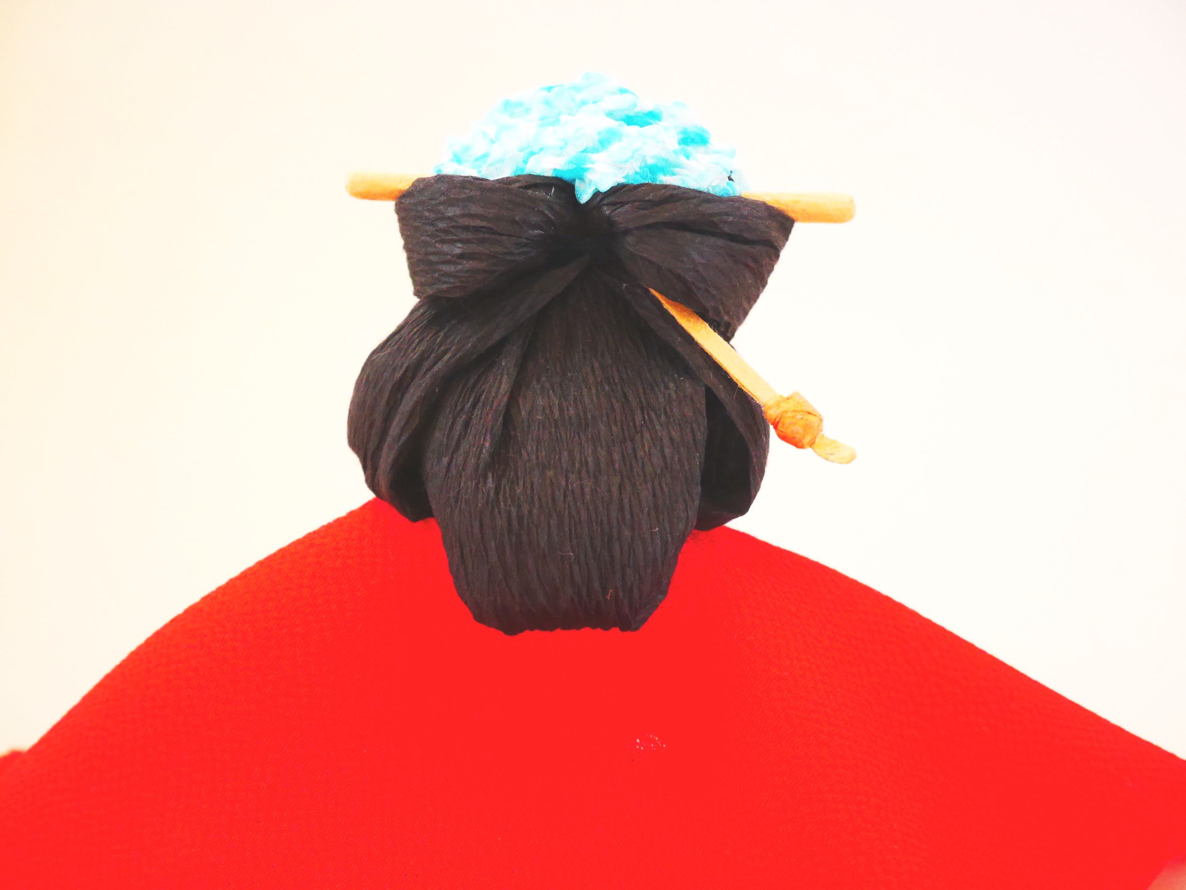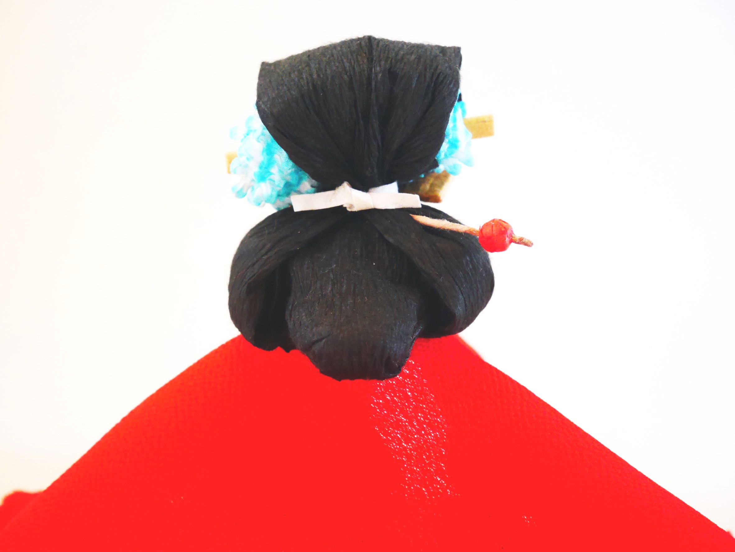 古くから公家の男児が結っていましたが、明治時代以降は8,9歳の女児によって結われました。頭の上に眼鏡のように2つの輪をつくった髷です。