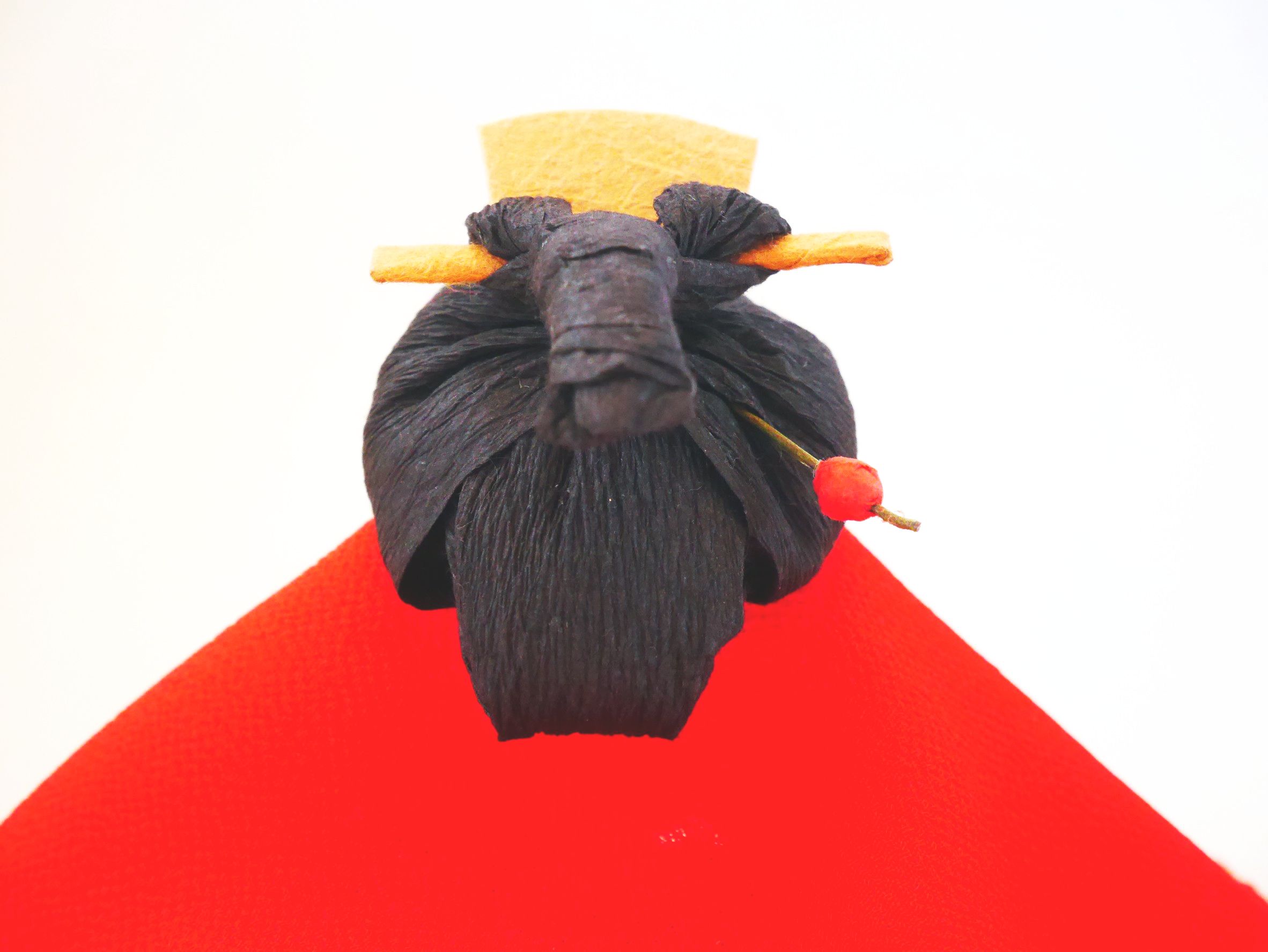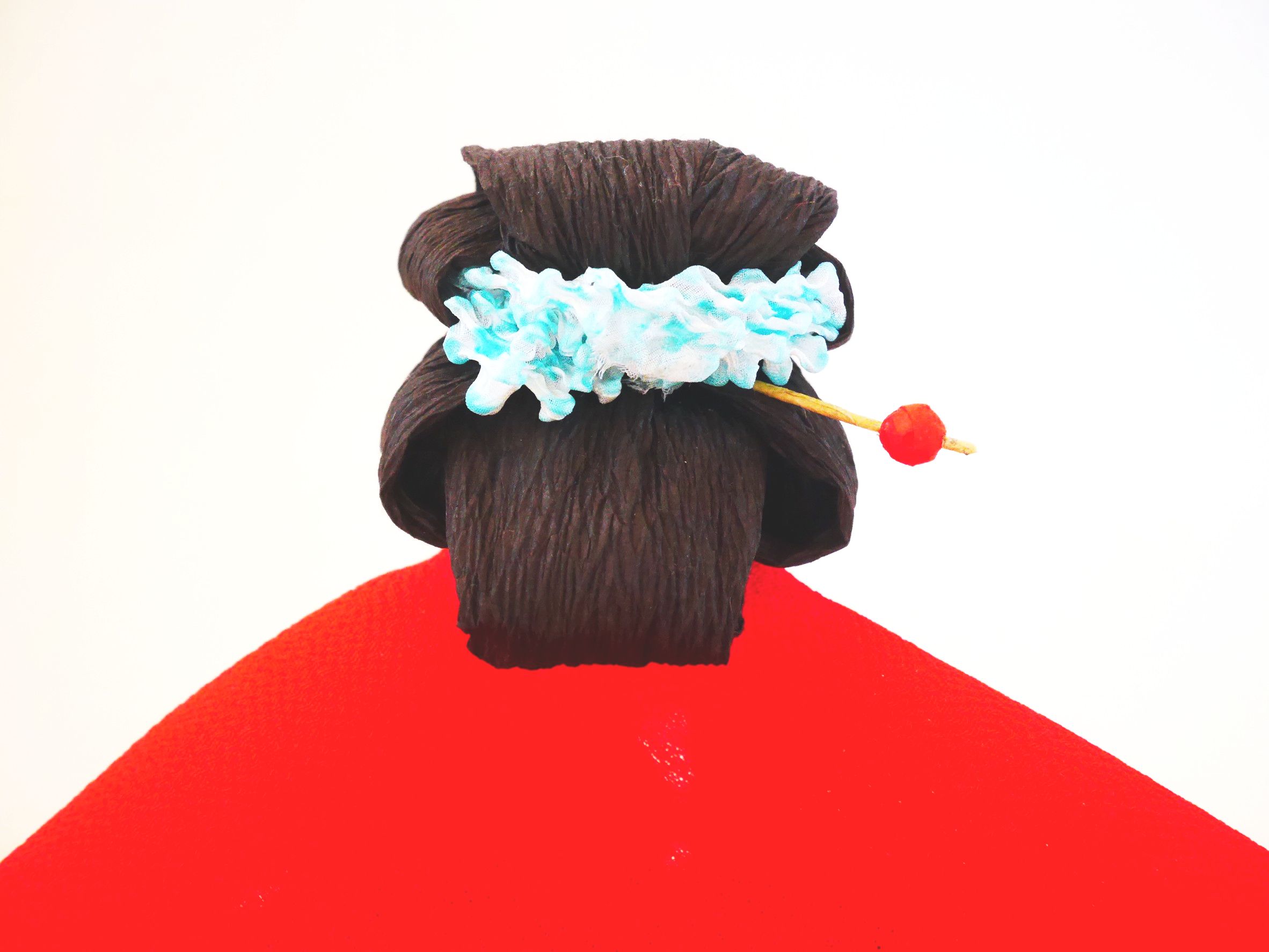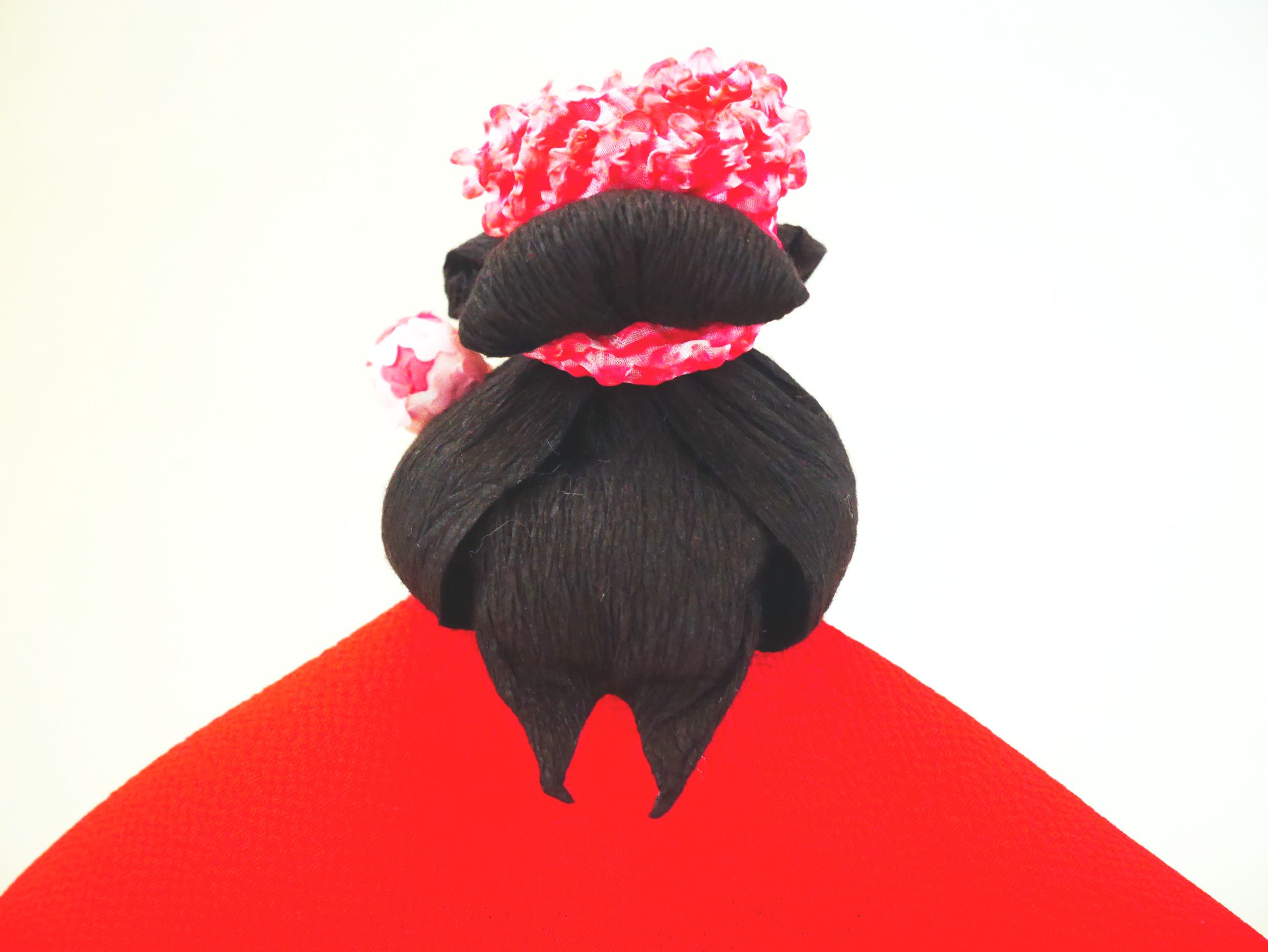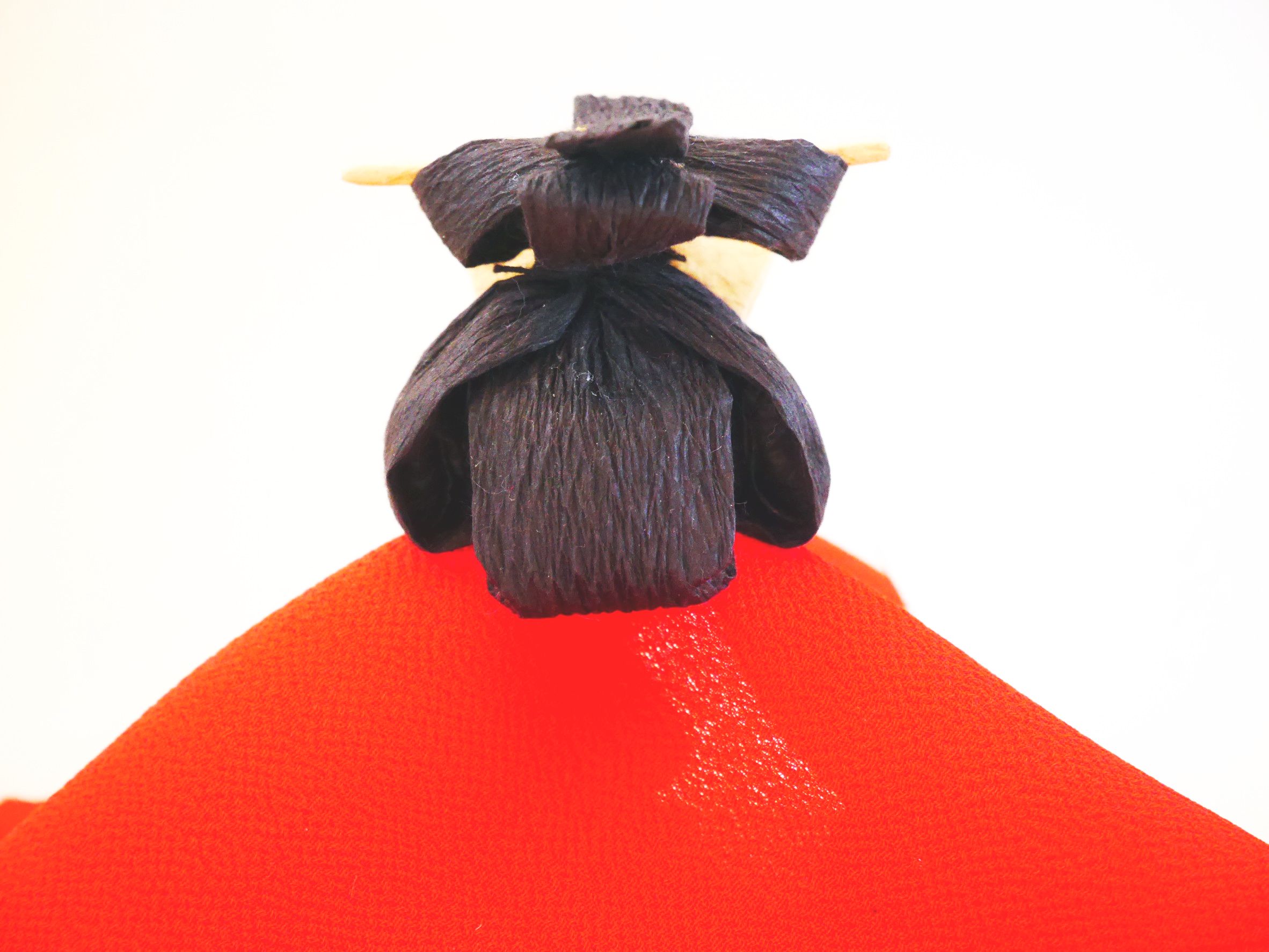 古くから公家の男児が結っていましたが、明治時代以降は8,9歳の女児によって結われました。頭の上に眼鏡のように2つの輪をつくった髷です。