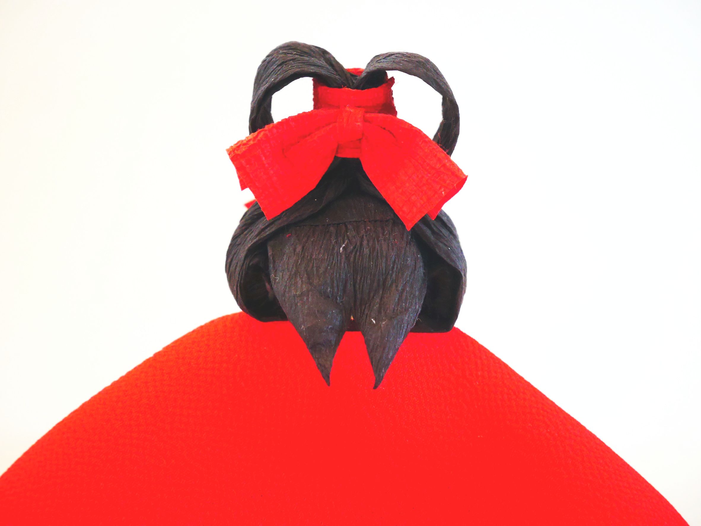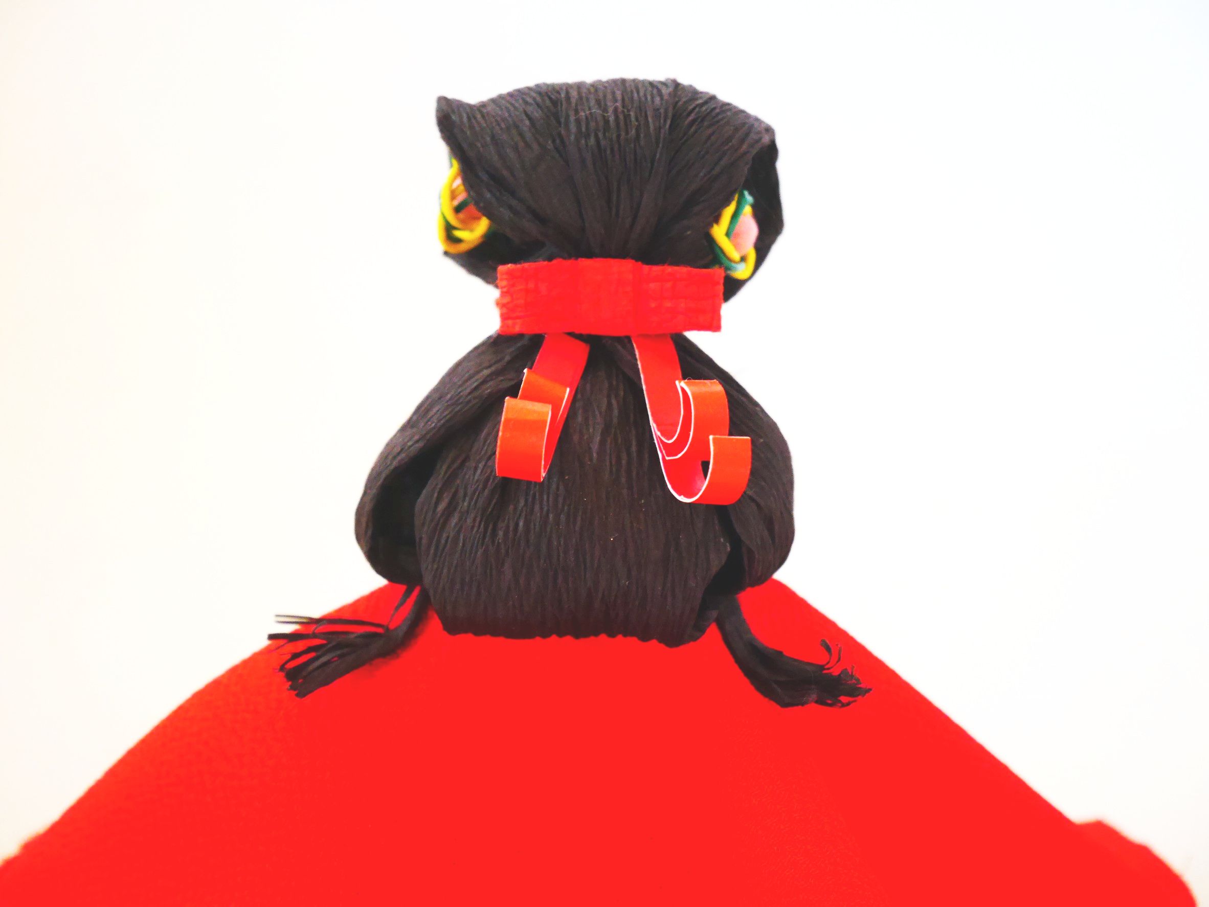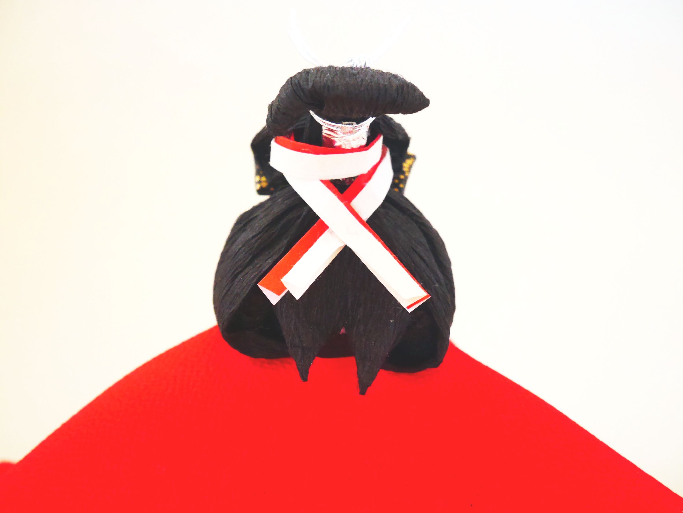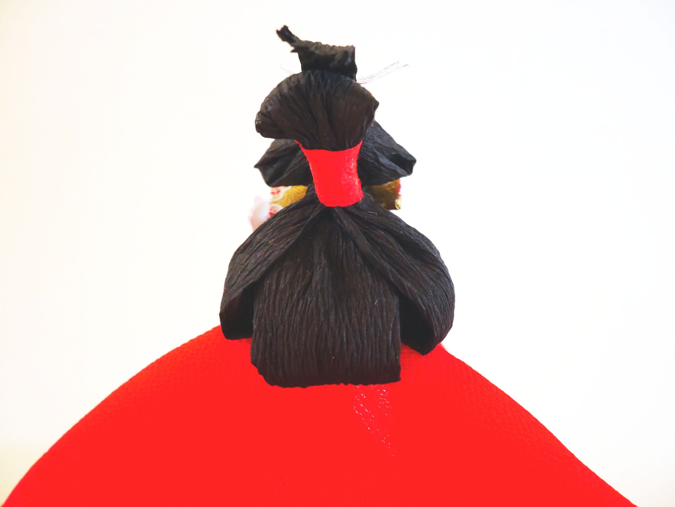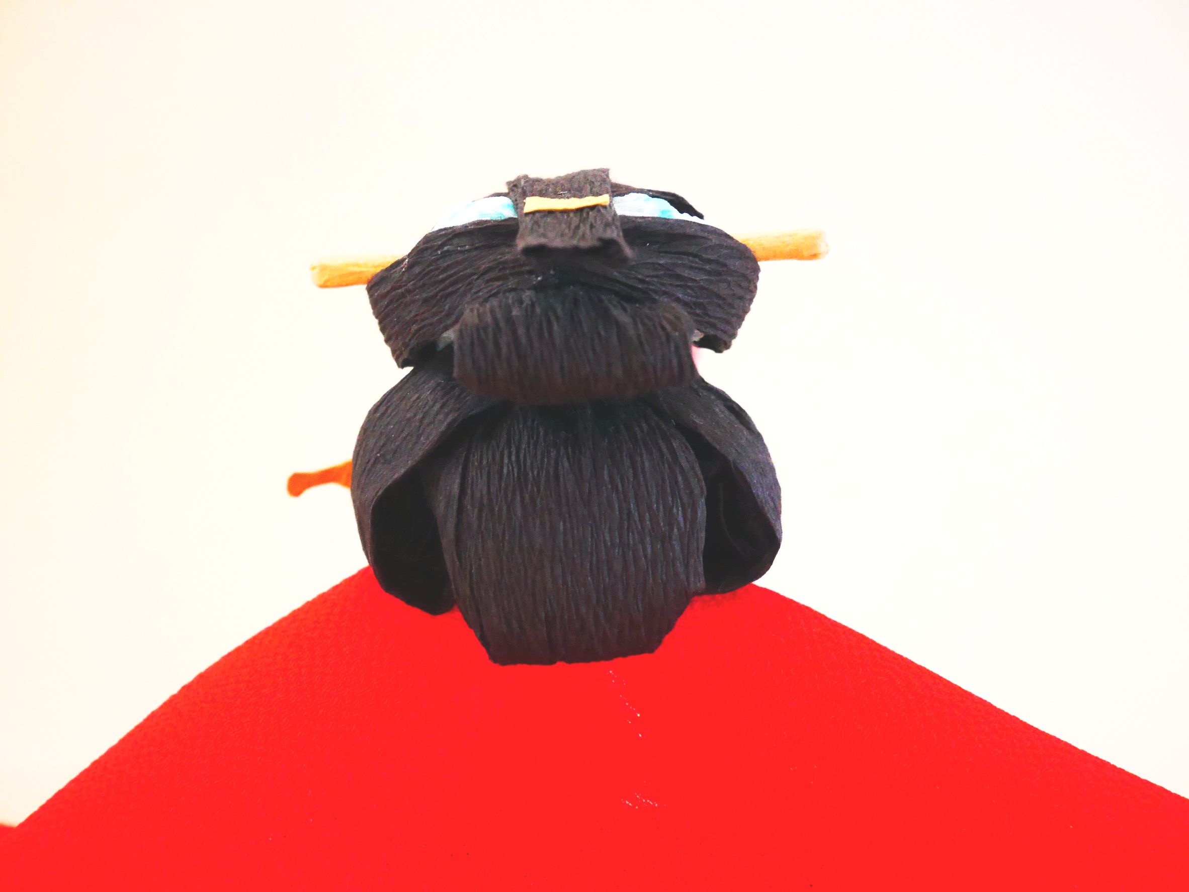 古くから公家の男児が結っていましたが、明治時代以降は8,9歳の女児によって結われました。頭の上に眼鏡のように2つの輪をつくった髷です。