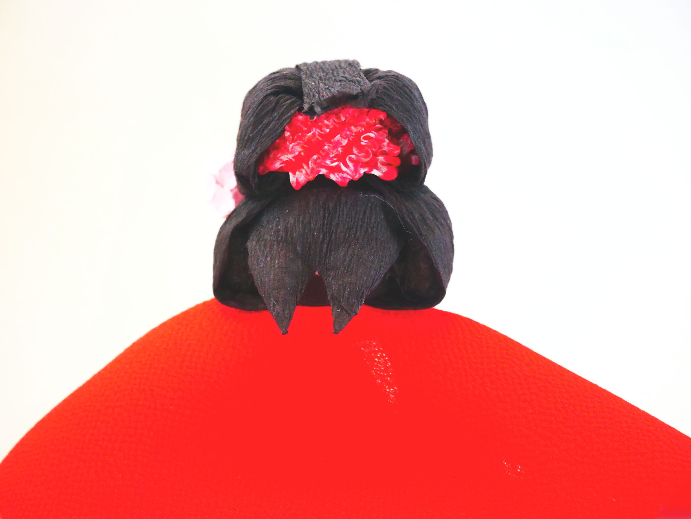 根の高い島田髷。文金高島田、針打ち、奴島田などそれぞれ特徴はありますが、形は殆ど同じ。江戸時代中頃からいろいろな形で発生してきたようですが、後期になるとひとつになり優雅で品格のある形が上流階級に好まれた。優雅で上品さが今日の花嫁の髪型に使われるようになった。